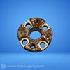A flange coupling with multiple bolt holes and a central bore, likely used for connecting shafts in industrial machinery.