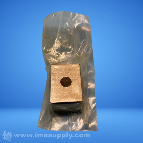 A square mechanical spacer with a central hole, likely used for alignment or spacing in industrial applications.