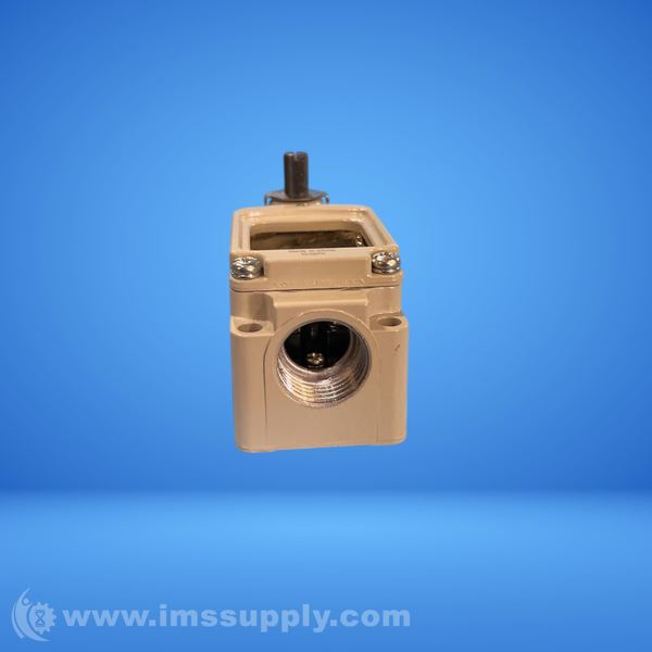 Industrial component with 4-pin connector and adjustable knob, possibly used for control or connection purposes