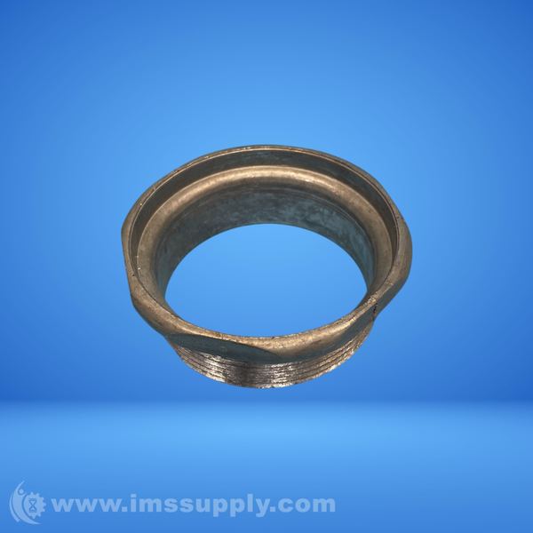 Threaded pipe fitting with flared end, likely used for connecting pipes in industrial applications