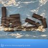 A set of cylindrical and rectangular industrial bushings or sleeves, possibly used for wear reduction or alignment in mechanical assemblies.