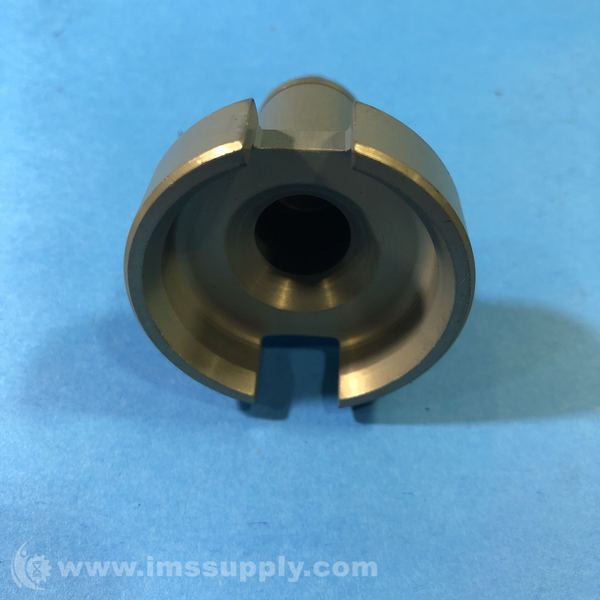 A precision-machined industrial component featuring a cylindrical body with a central orifice and keyed base, likely used in fluid control or metering applications.