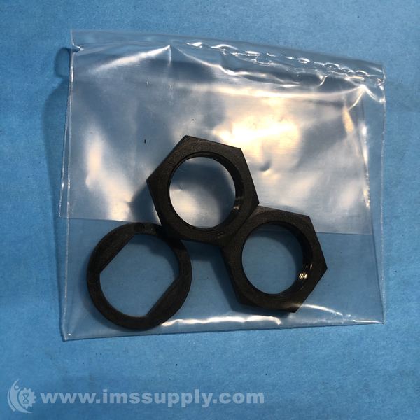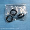 Kit containing three black metal washers and nuts for mounting or adjustment