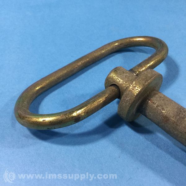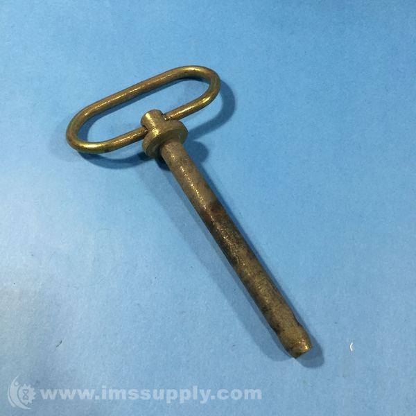 A brass winding key with a loop handle and a cylindrical shaft featuring a drilled hole at the tip
