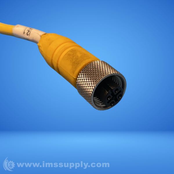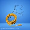 Yellow industrial cable with a metal connector, likely used for signal or power transmission in an industrial setting
