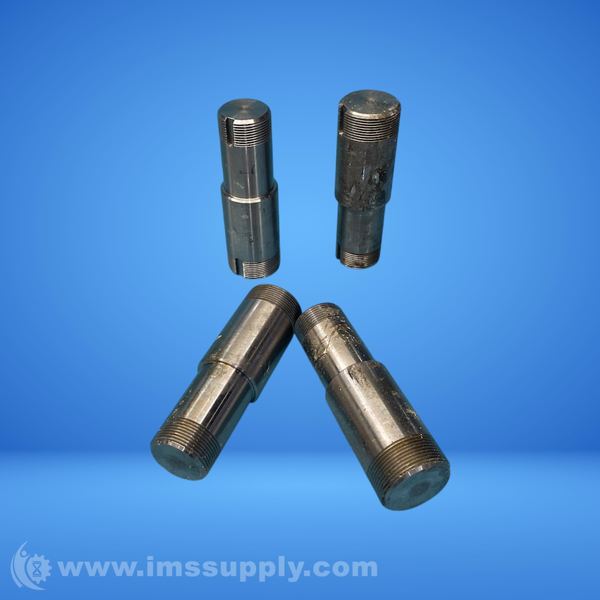 Threaded pipe fittings or adapters with male threads on both ends and a central section of varying diameter, possibly used for connecting or transitioning between pipes or tubing of different sizes.