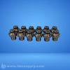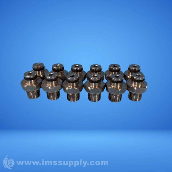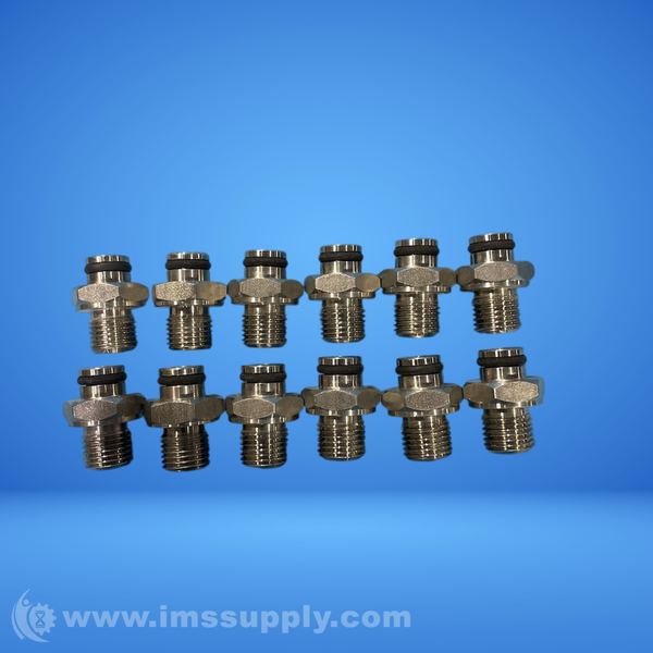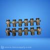 Set of industrial fittings with threaded connections and hexagonal nuts
