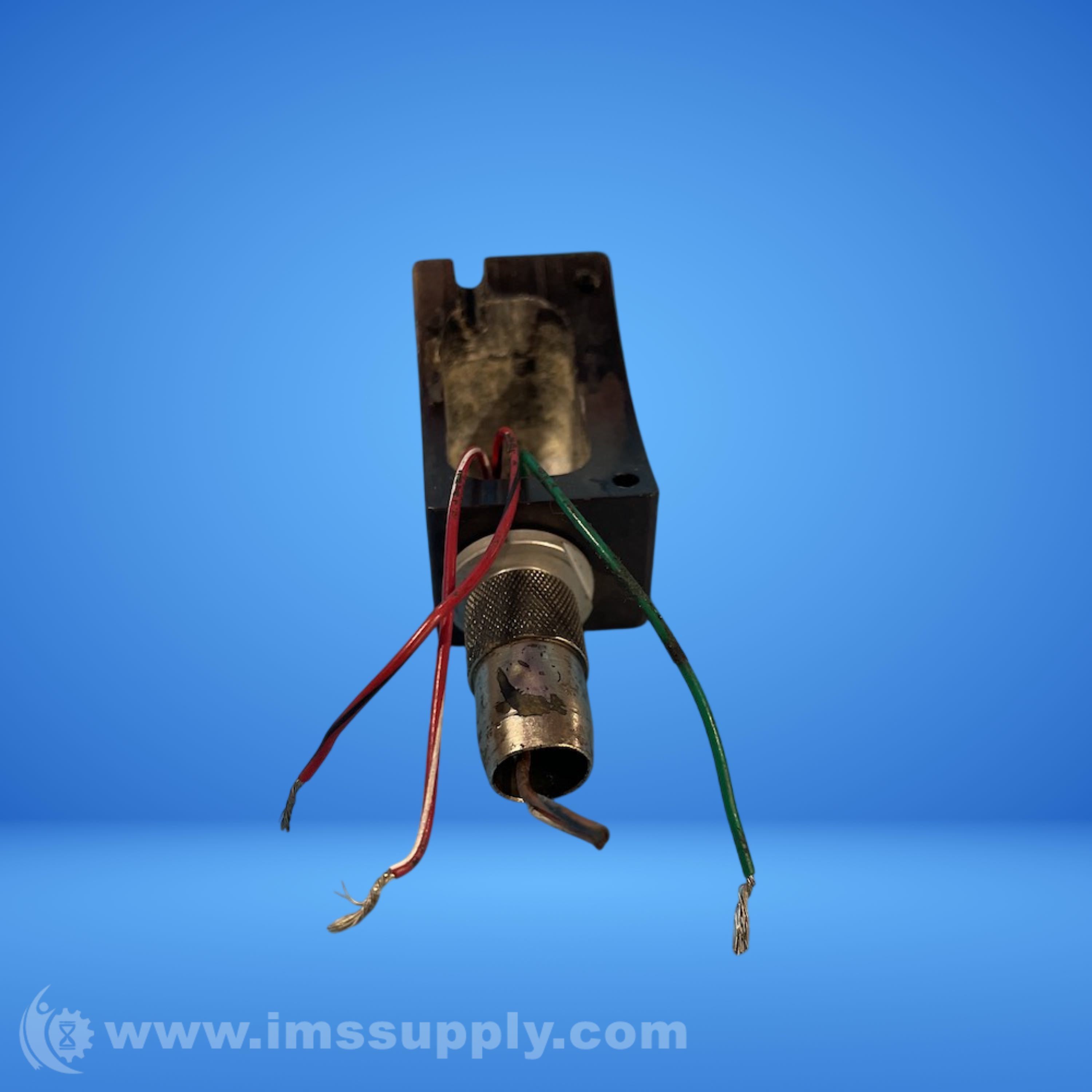 An electromagnetic pickup with multiple wires and a metal housing, likely used for sensing or monitoring applications.