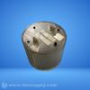 Cylindrical industrial component with knurled exterior and visible internal mechanisms