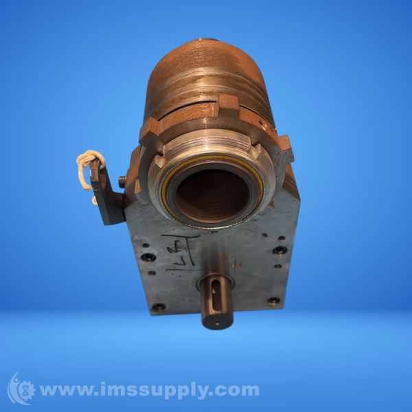 Industrial valve or actuator assembly with mounting flange and control linkage.