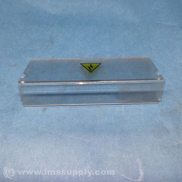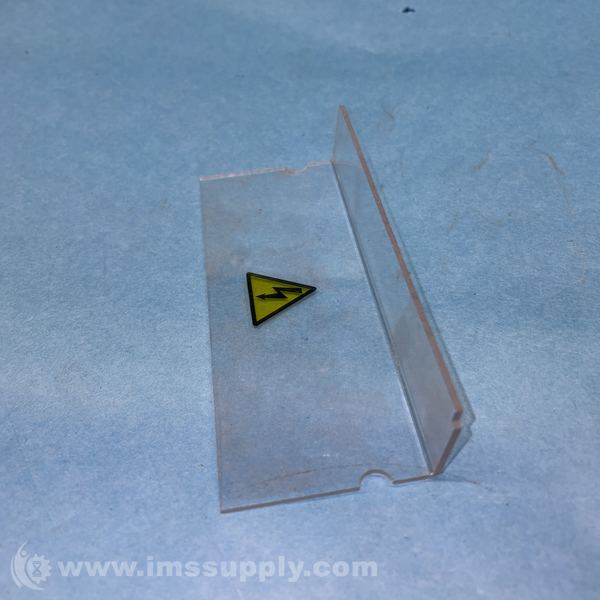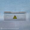 A clear plastic or acrylic holder or container with a yellow triangular warning sticker indicating high voltage.
