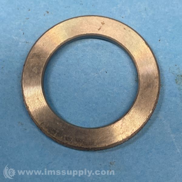 A metallic washer or gasket with a circular shape and smooth surface, likely used for sealing or spacing applications in industrial settings.