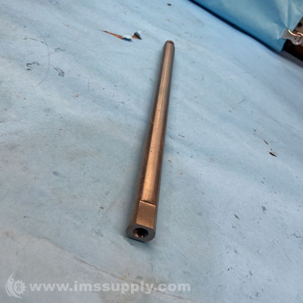 A cylindrical industrial shaft with a drilled hole at one end and a tapered or shaped section near the other end.