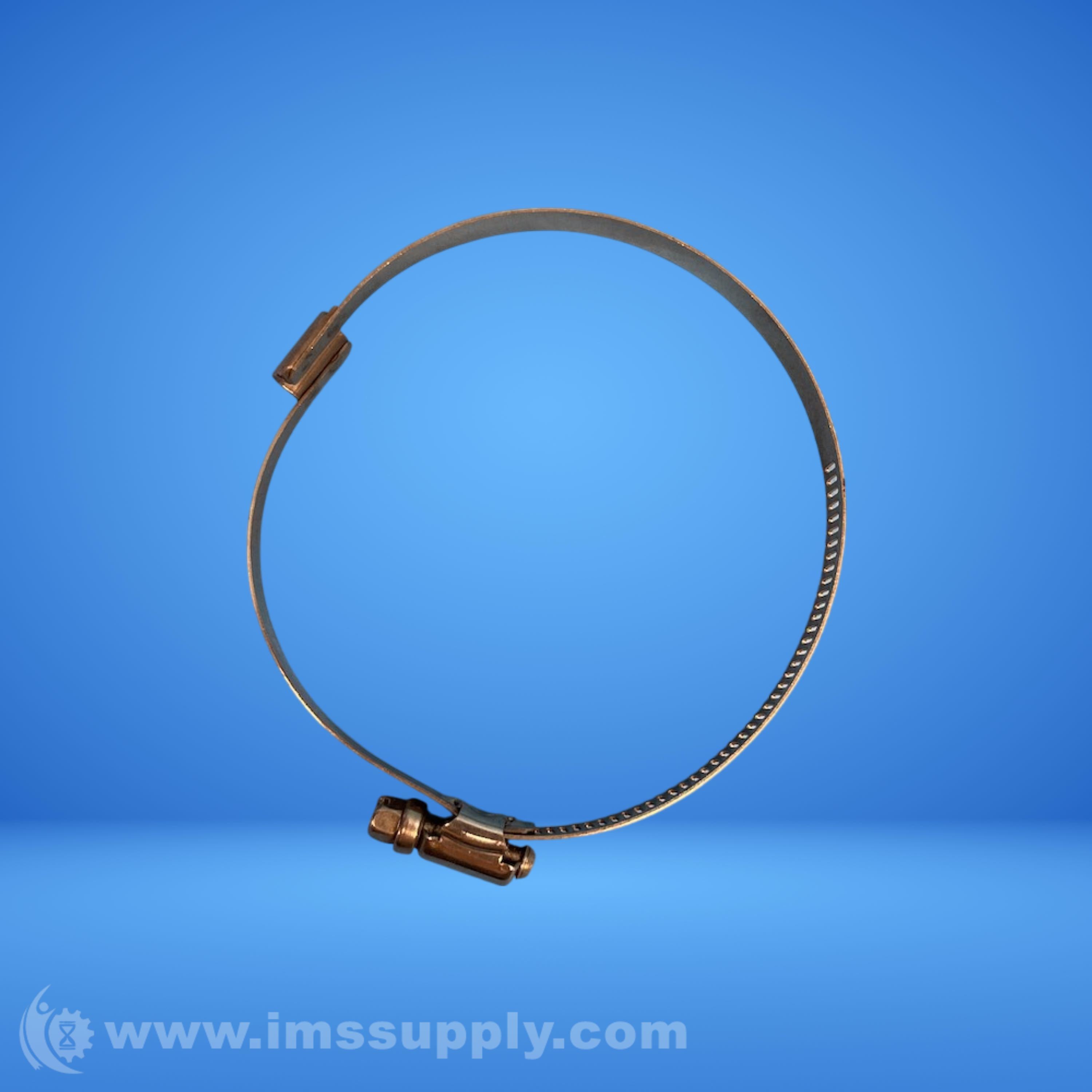 A worm drive hose clamp used for securing hoses and tubing in industrial applications.