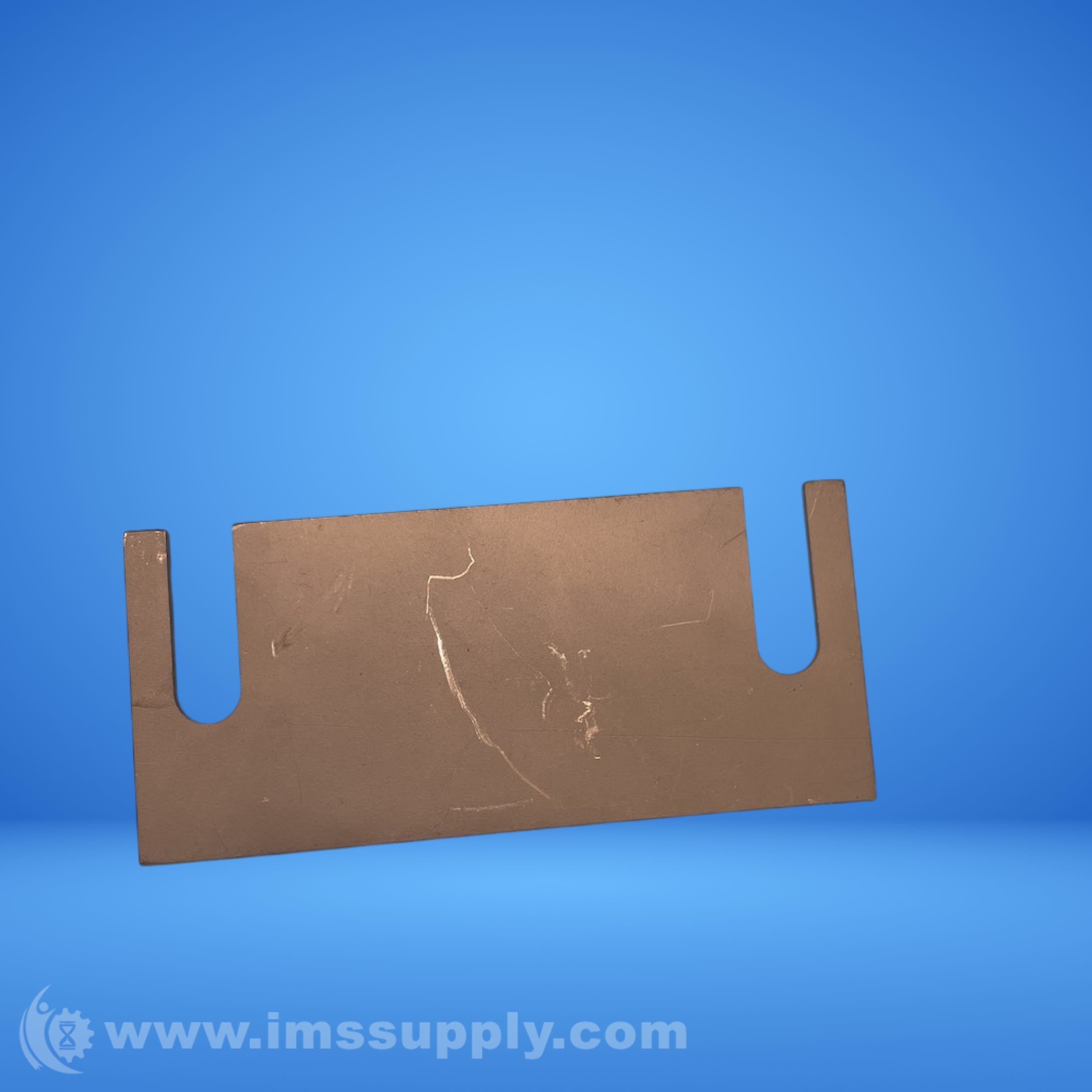A rectangular industrial spacer or shim with notched ends, likely used for alignment or spacing in machinery or equipment.