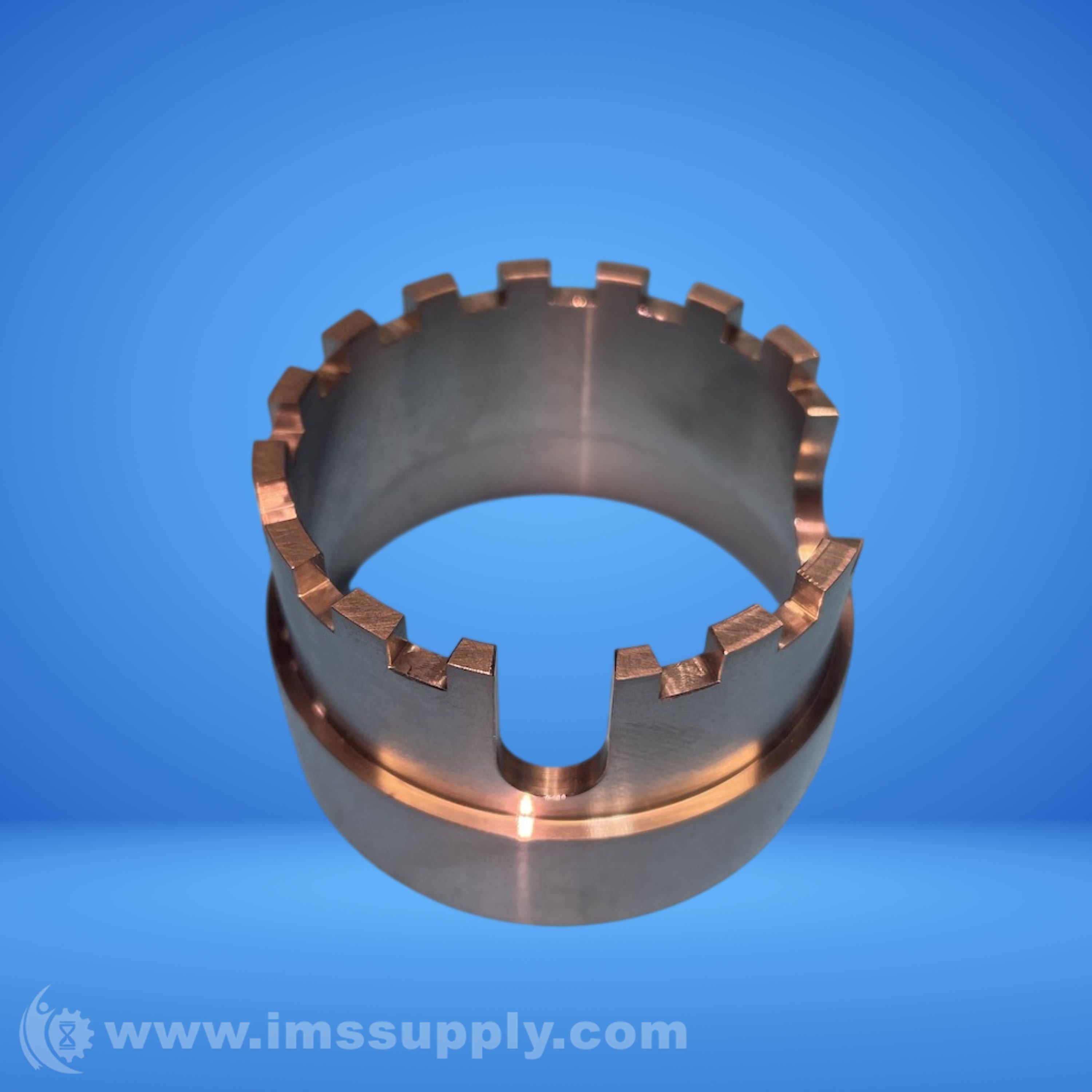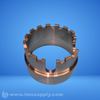 Industrial component assembly featuring interlocking gears and a cylindrical housing with anti-rotation design