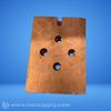 Copper punch plate with four circular holes and notches on top and bottom edges