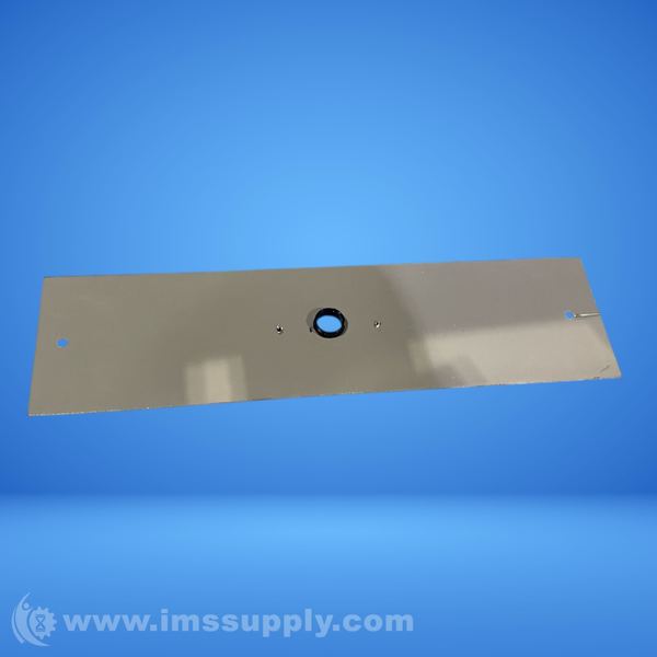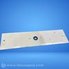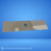 Rectangular industrial blade with central mounting hole and smaller holes on either side, used for cutting or trimming.