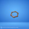 A metallic ring with notched edges, possibly serving as a washer or gear component in industrial applications.