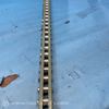 Double roller chain with attachments, likely used in conveyor systems for material handling