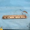 A machined metal block with multiple holes and a curved profile, likely used for industrial manufacturing or assembly purposes.