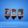 Industrial clamp or coupling component with a circular hole and angular design, likely used for mechanical fastening or connection purposes.