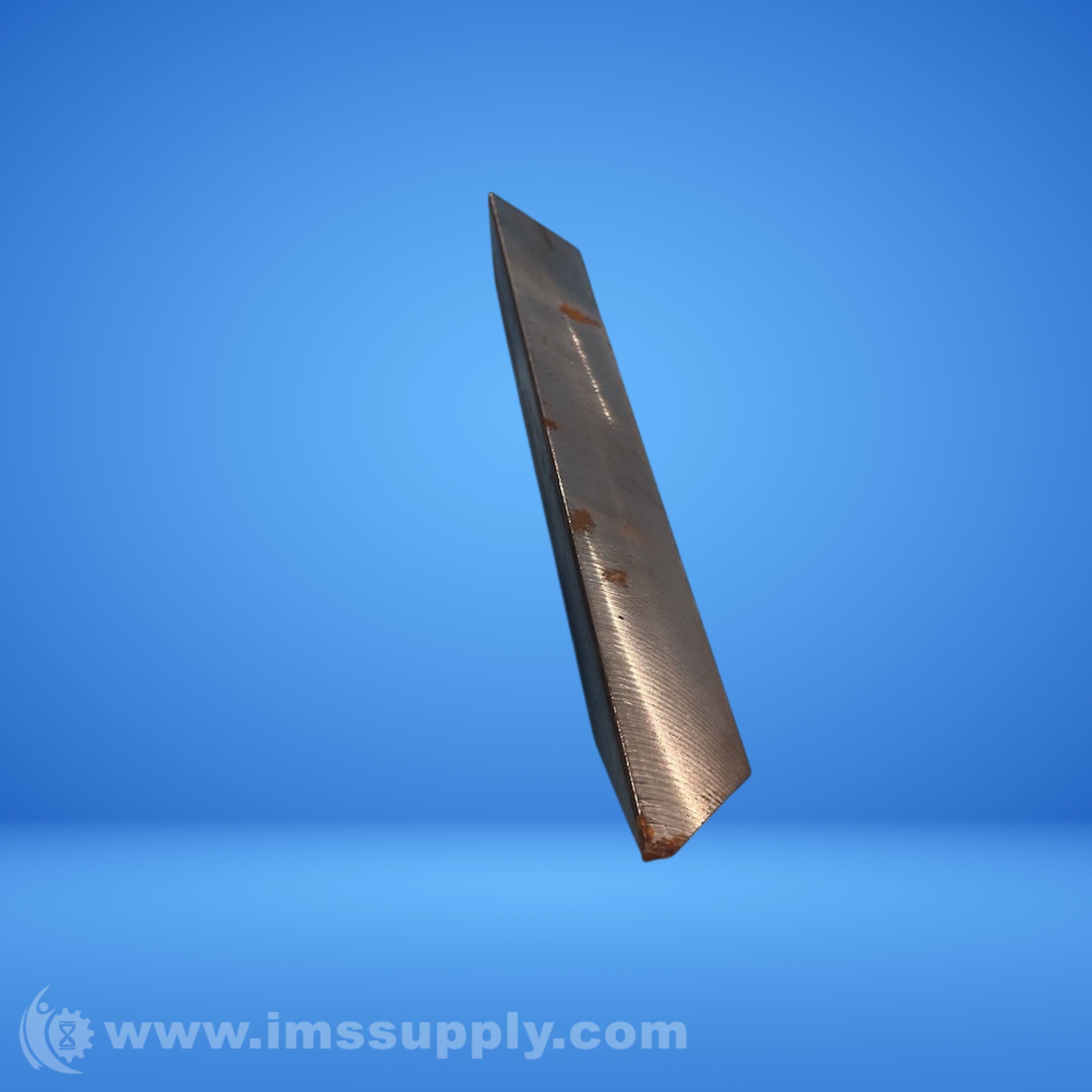 Rectangular industrial knife or blade with sharp edge and pointed tip.
