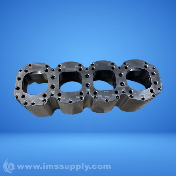 Industrial die assembly for machinery applications, configured with four cavities and multiple mounting holes