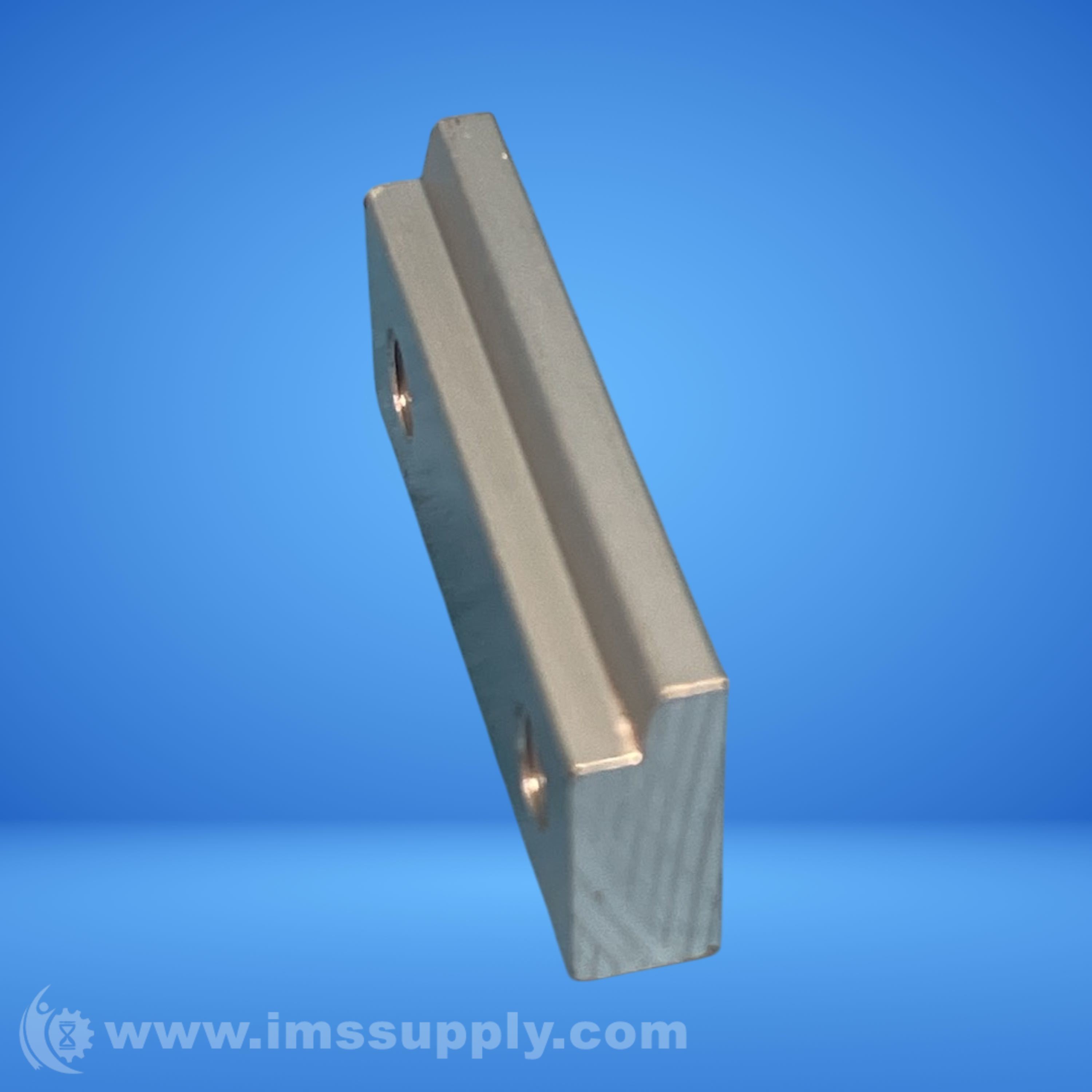 A metal clamp or bracket with two mounting holes, likely used for securing or supporting industrial equipment or components.