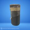 A roll of plastic grid material, wrapped in plastic and tape, with a cylindrical shape and visible grid pattern.