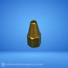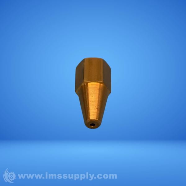 Industrial spray nozzle with hexagonal base and tapered tip, featuring a central orifice