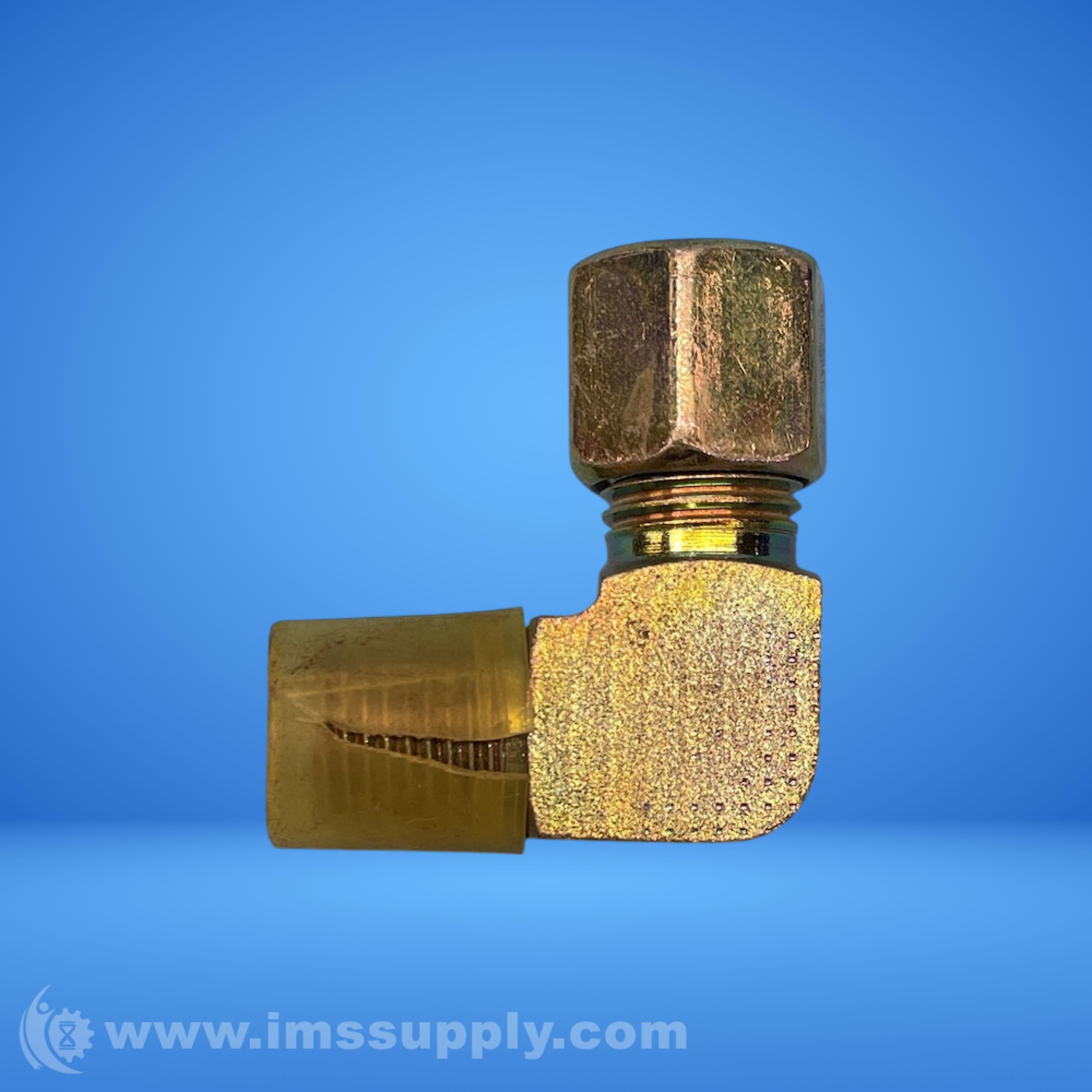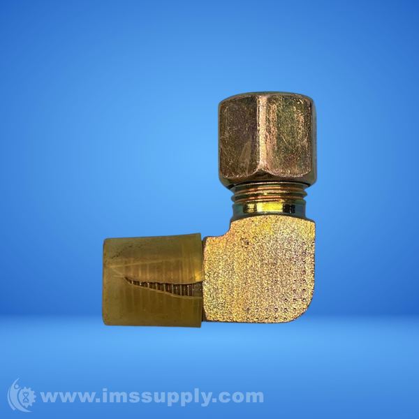 90 degree brass compression fitting with threaded connection and compression nut