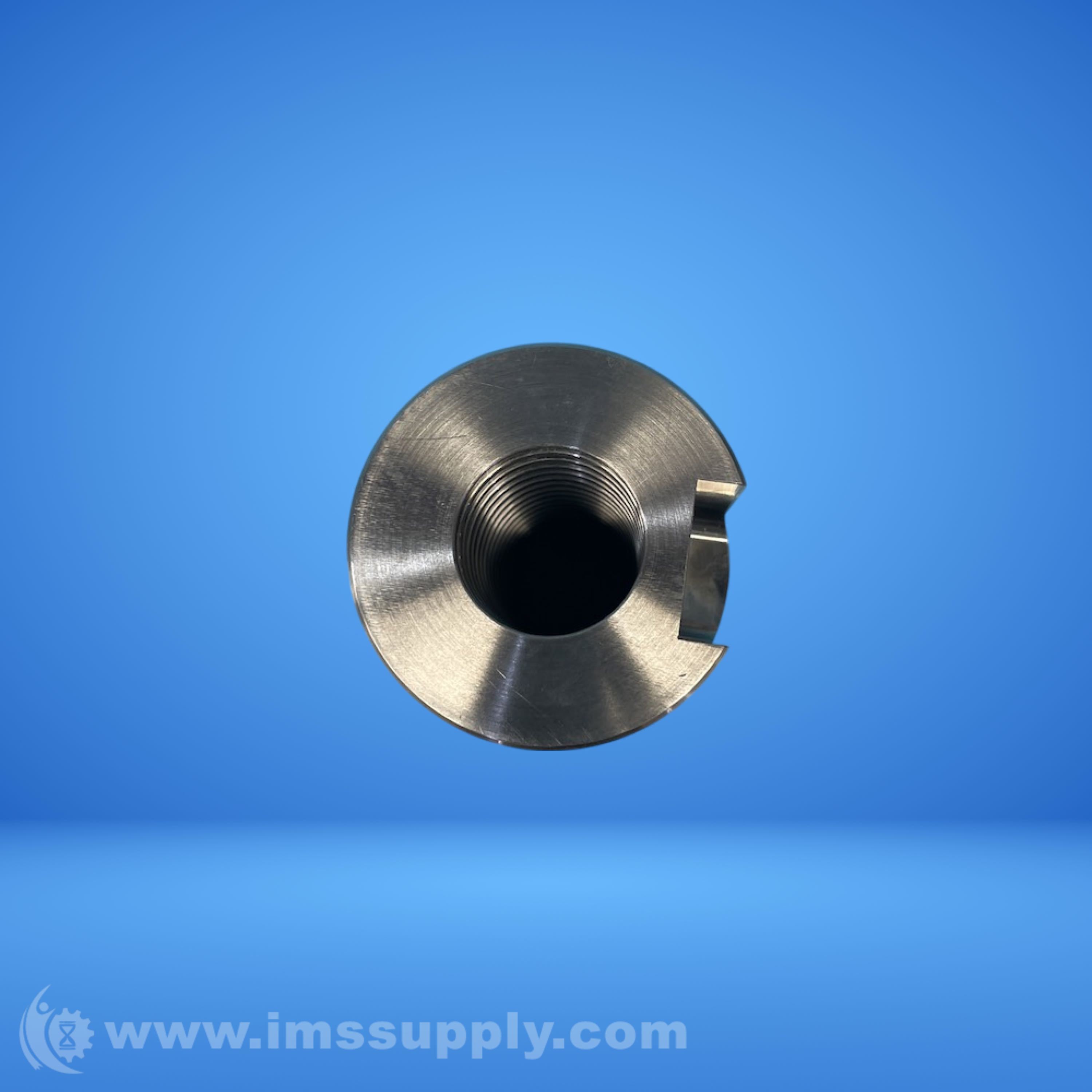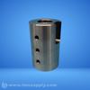 A cylindrical industrial component with threaded internal bore and radial holes