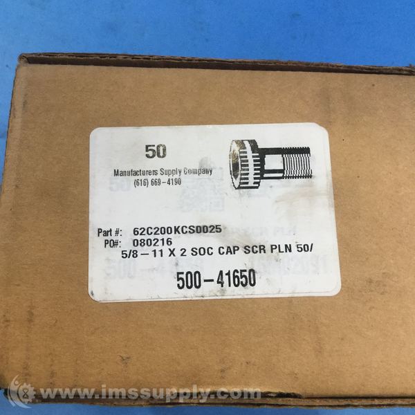 62C200KCS0025 Socket Head Cap Screw, 5/8 - 11x2 SOC CAP SCR PLN, Box of 50
