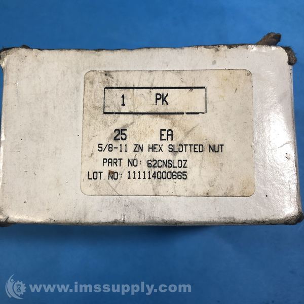62CNSL0Z 5/8-11 ZINC PLATED HEX SLOTTED NUT, BOX OF 25