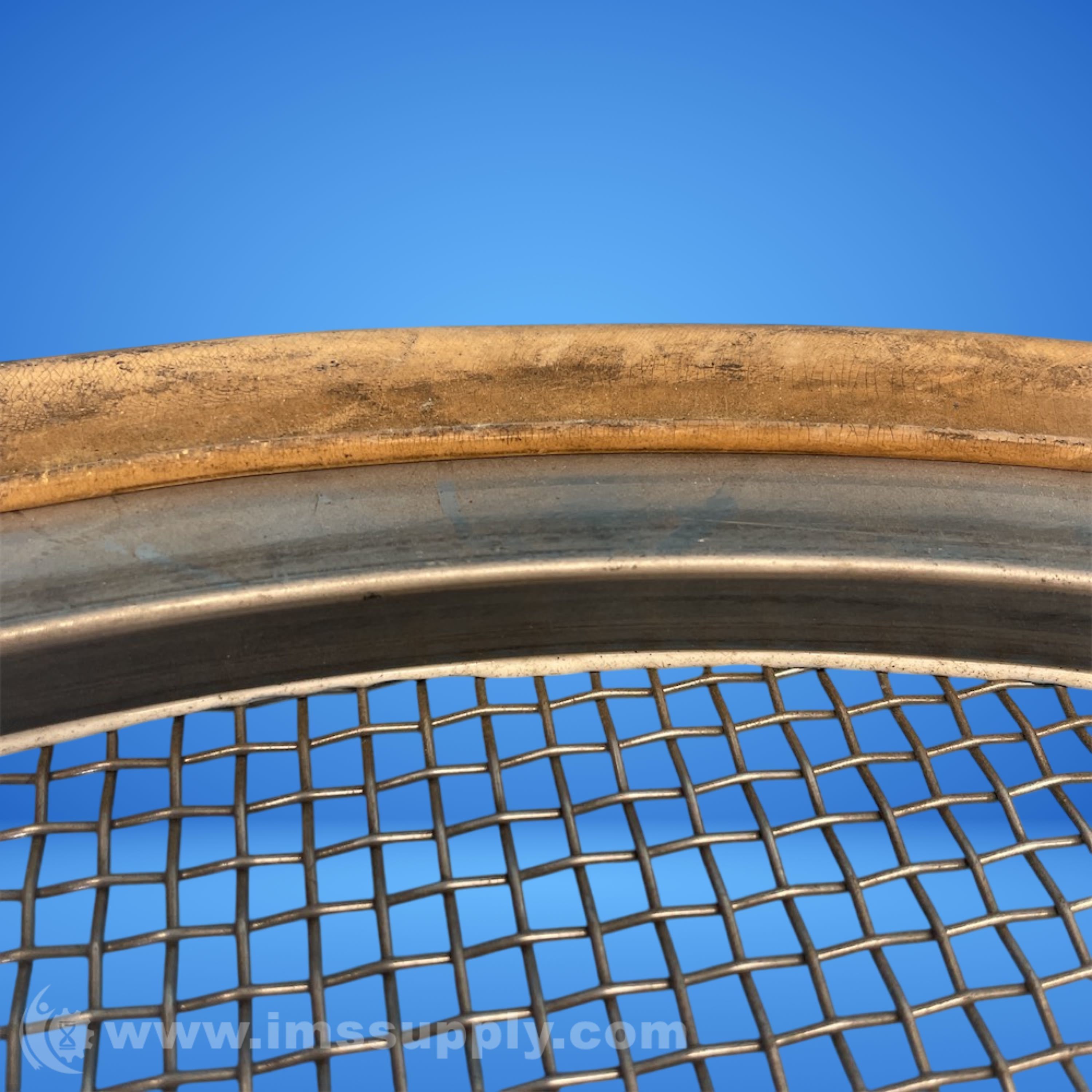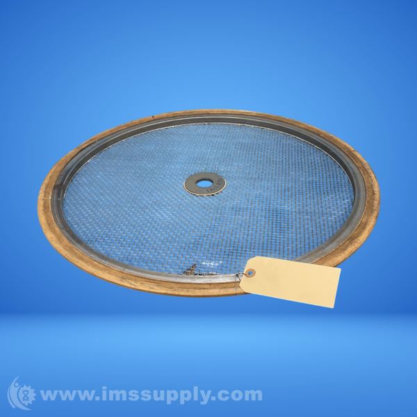 Industrial sieve or strainer element with mesh screen and wooden or composite rim, used for filtering or separating materials