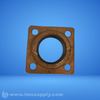 Square flange with four bolt holes and a central bore, likely used for piping or tubing connections in industrial applications.