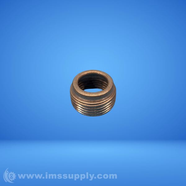 A threaded brass fitting used for plumbing or piping connections.