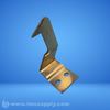Metal bracket with mounting holes and formed shape, likely used for structural support or attachment in industrial applications.