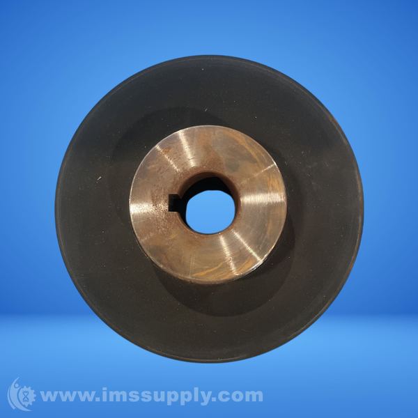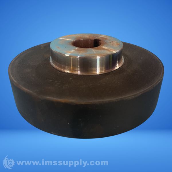 A rubber-coated wheel or pulley with a metal hub, featuring a central hole and keyway or mounting holes for shaft attachment.