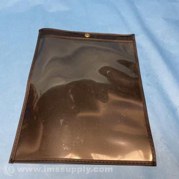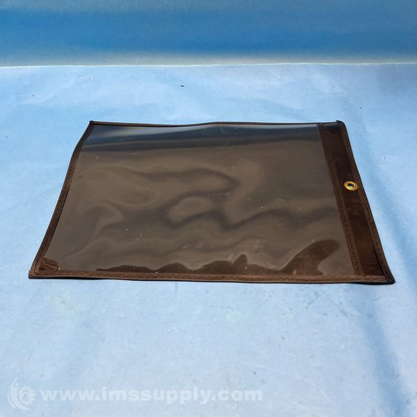 Brown leather document pouch with transparent plastic window and brass grommet