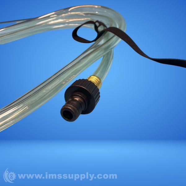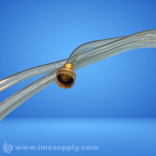 Clear plastic tubing assembly with threaded brass and black plastic fittings