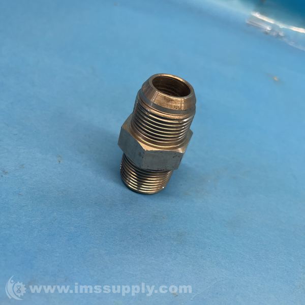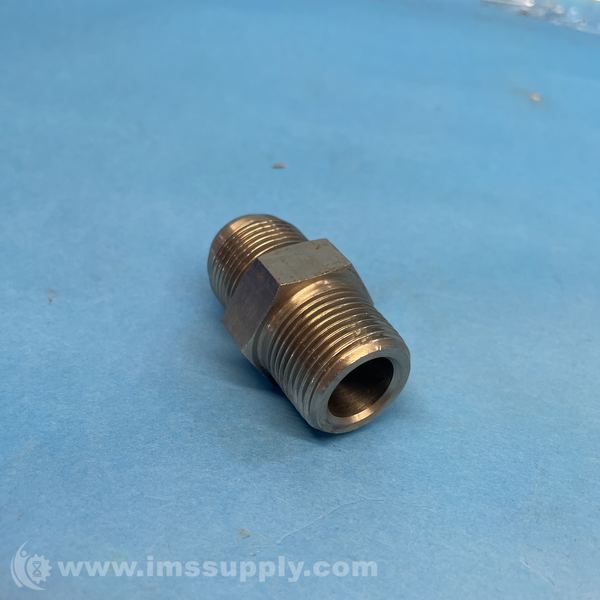 Brass pipe fitting with threaded male ends and hexagonal center