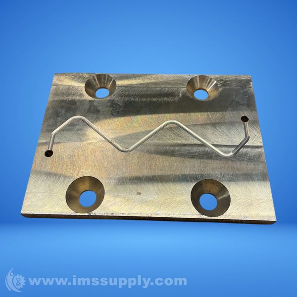 A machined metal plate featuring multiple mounting holes and a formed metal component attached to its surface.