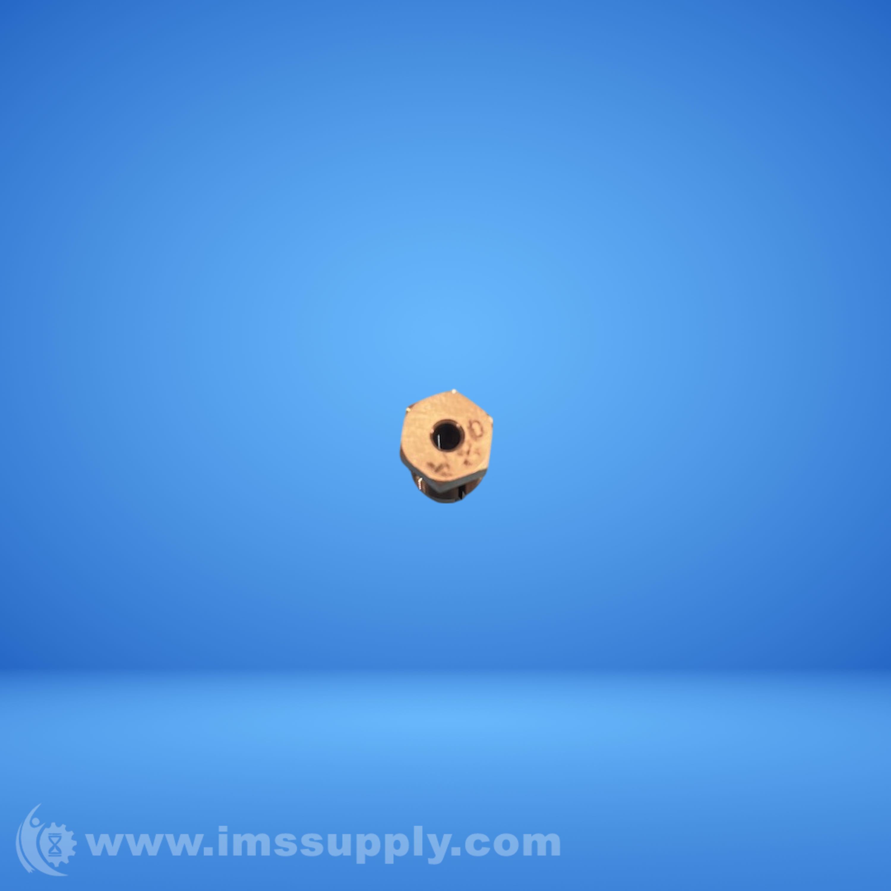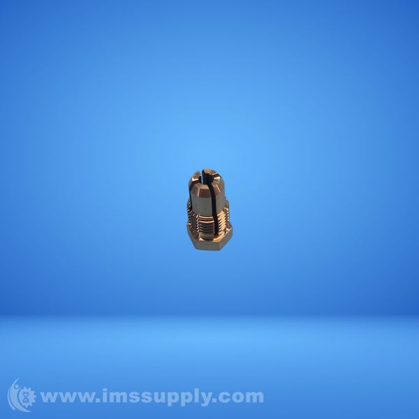 A copper fitting with a slotted configuration, featuring a hexagonal base and threaded body.