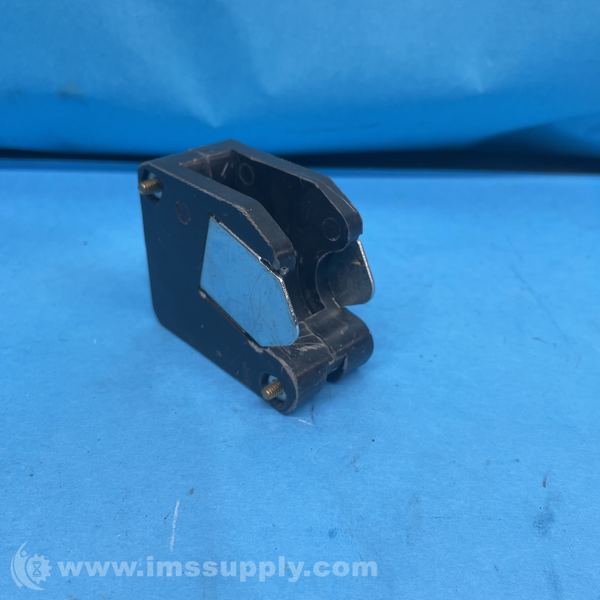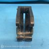 A metal clamp with a rectangular opening and bolted construction, likely used for securing or holding industrial components in place.
