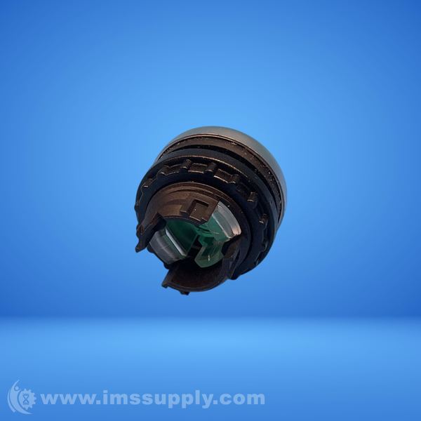 Momentary pushbutton switch with green actuator and metallic bezel