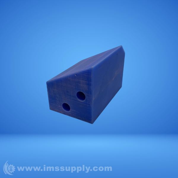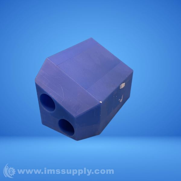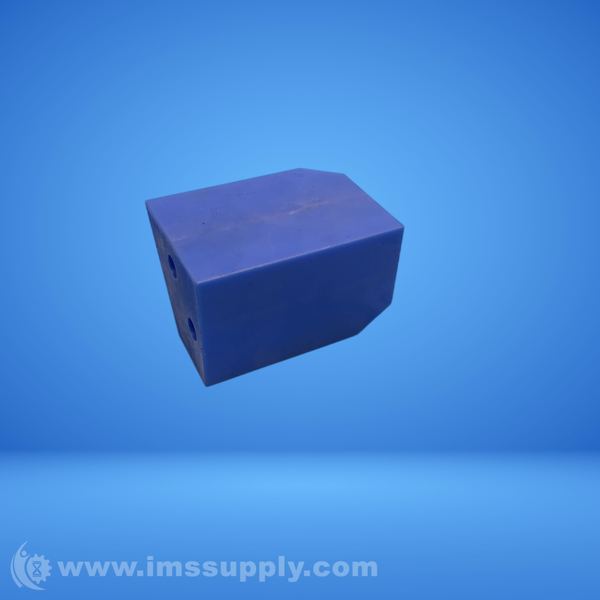 Industrial stop fixture with two visible holes, likely used for positioning or alignment purposes.