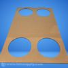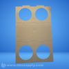 Cardboard carrier tray designed to hold two beverage containers, featuring four circular cutouts for secure placement.