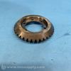 Industrial gear component with toothed rim and central mounting holes